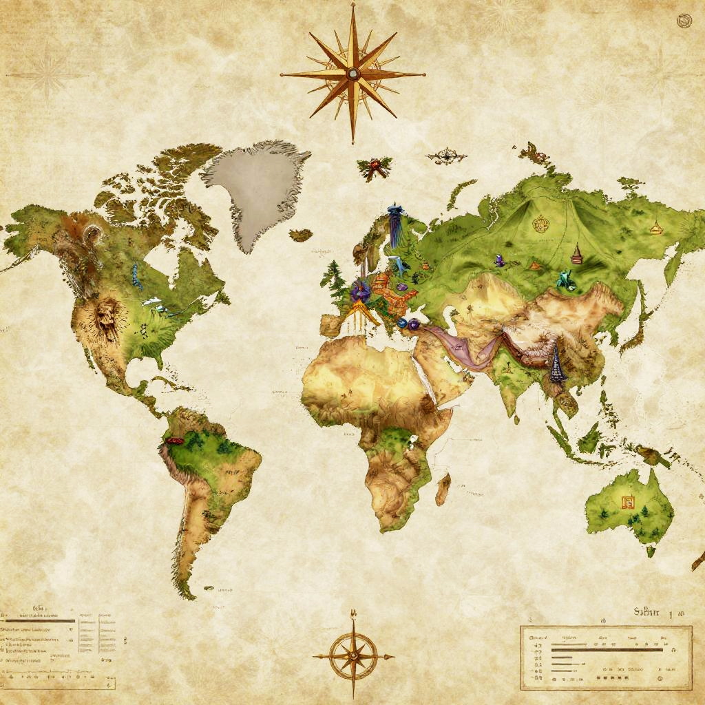 Vibrant Fantasy World Map Concept