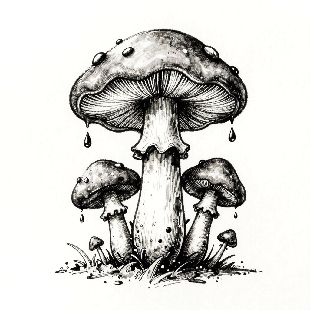 Mystical Dripping Mushroom Ink Sketch