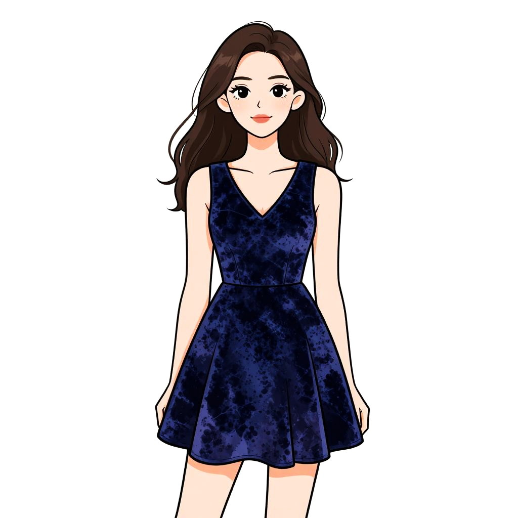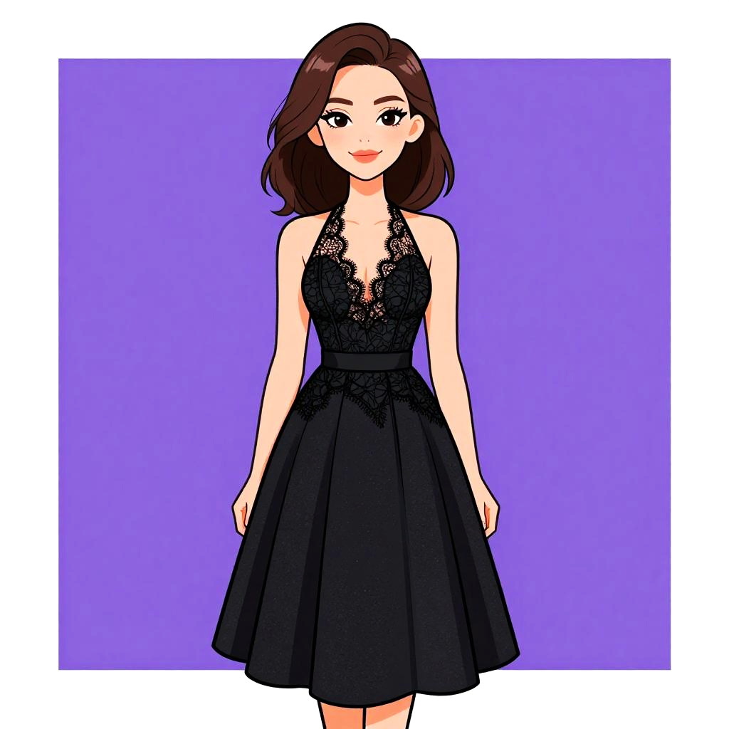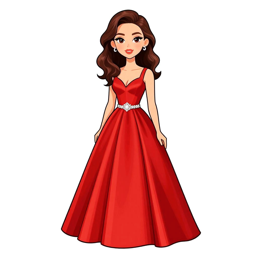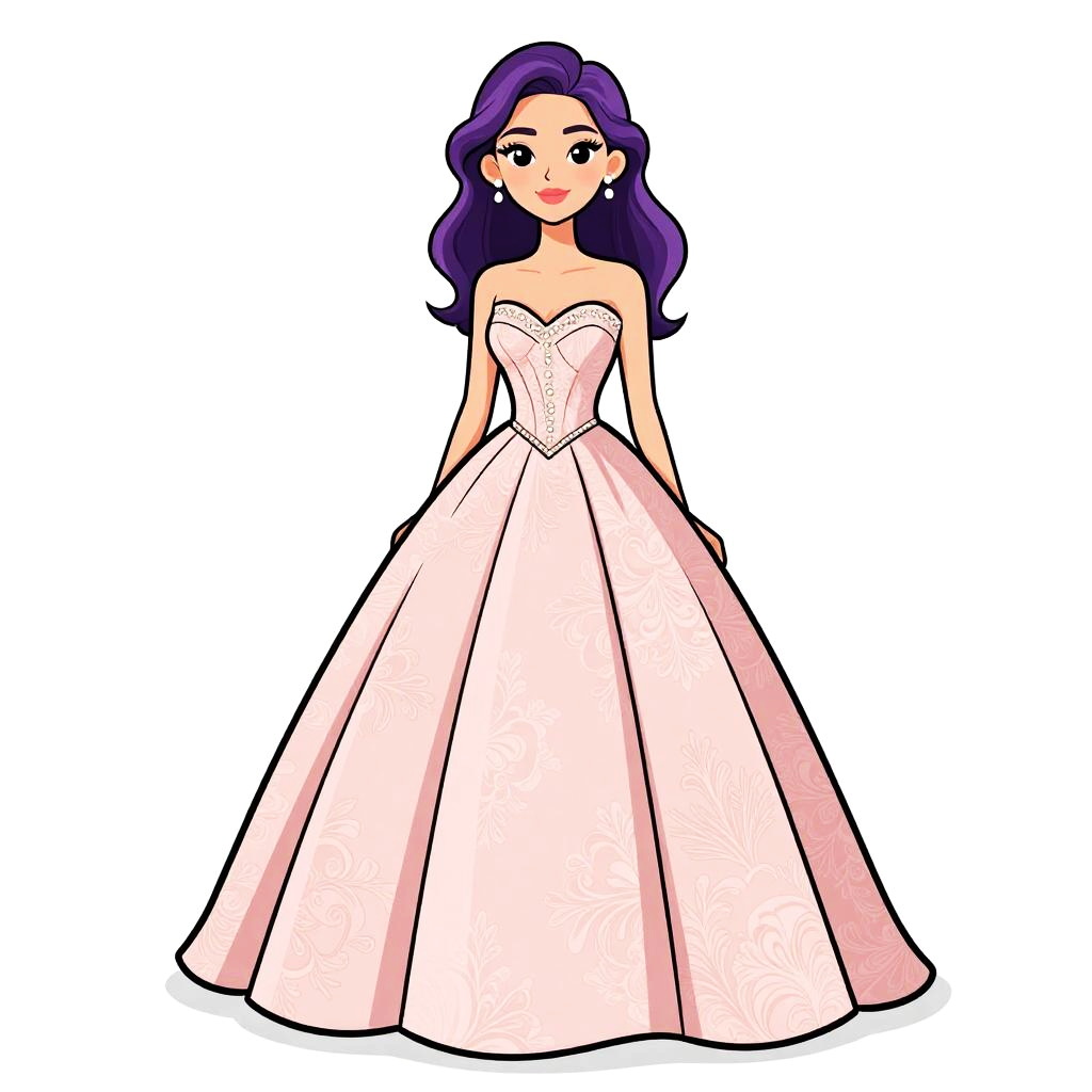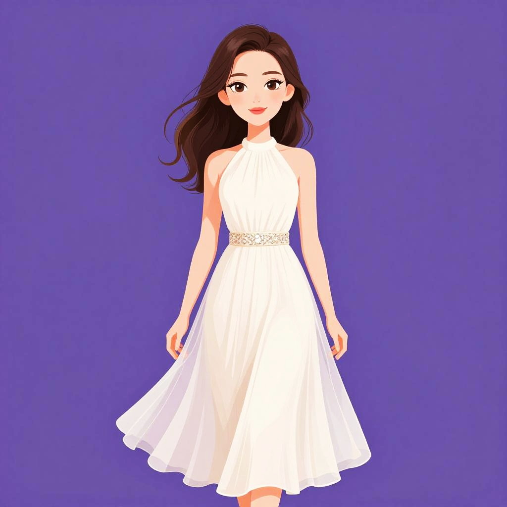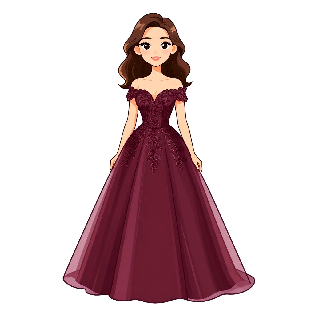 Woman with pretty face and pretty hair. Woman, classic elegance, A-line evening gown in sky blue, floral lace embroidery with shimmering details, V-neckline, sleeveless, fitted bodice, gently flared skirt from the waist, full-length, plain background --sref 1467