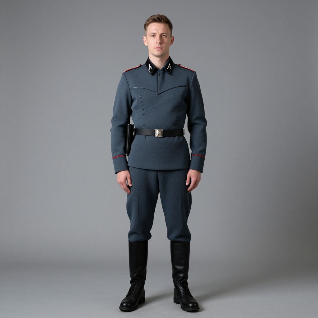 Adult german soldier costume, man in uniform posing for a picture in a studio