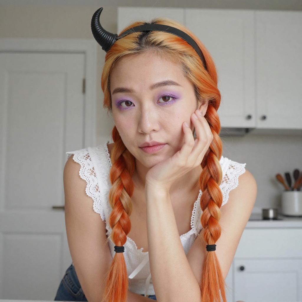Playful Asian Woman with Horned Headband