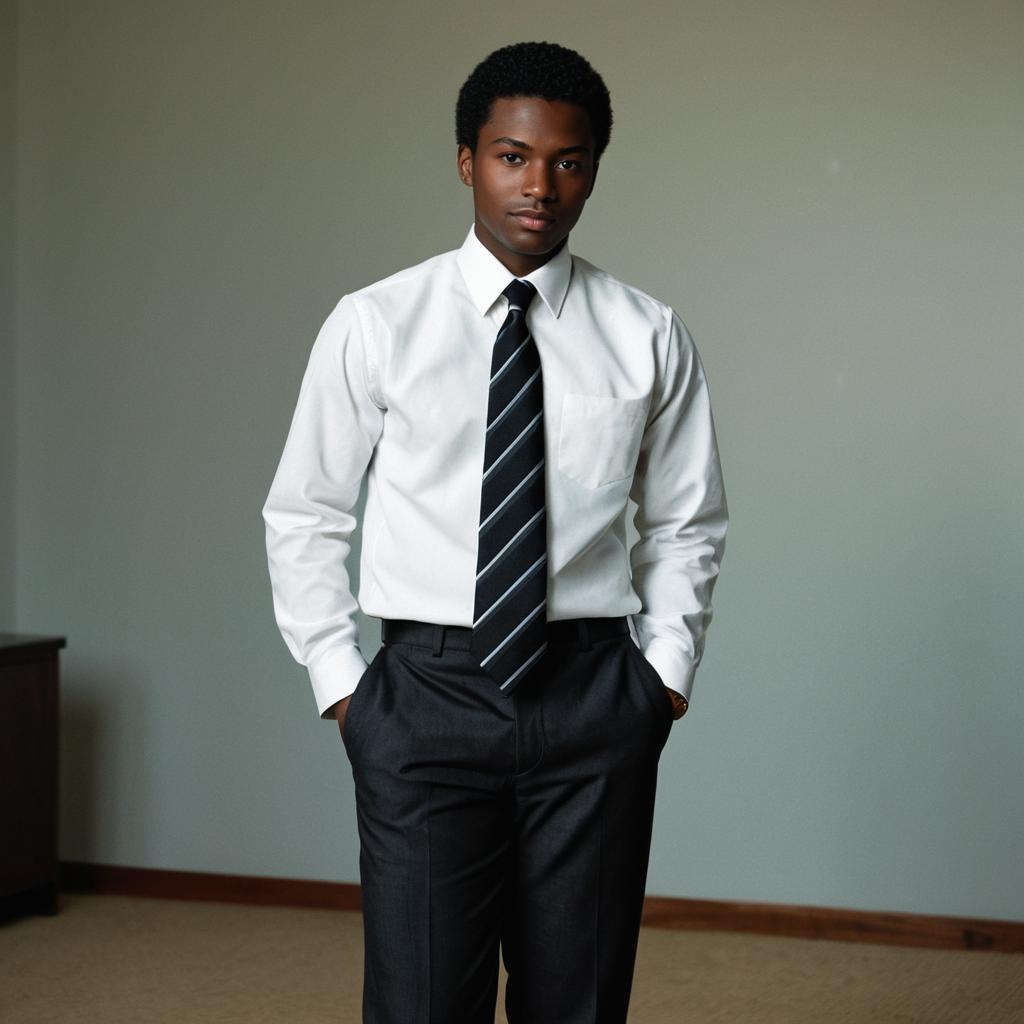 Man african suits,1boy, male focus, solo, necktie, suit, formal, hand in pocket, pants, standing, jacket, shirt, full body, realistic, white shirt, black hair, collared shirt, indoors, black necktie