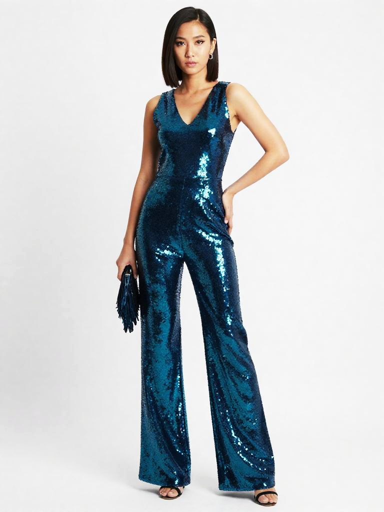 Teal-Aqua Sequin Jumpsuit Studio Shot