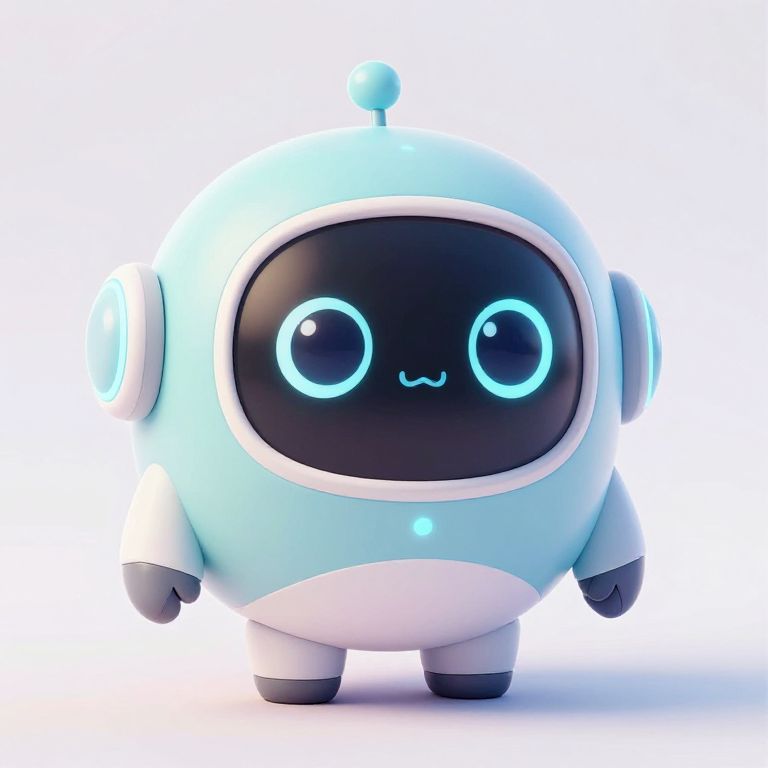 Cute robot character design, small round body with big expressive eyes, pastel colors, soft glowing LED accents, playful and friendly pose, futuristic but approachable style