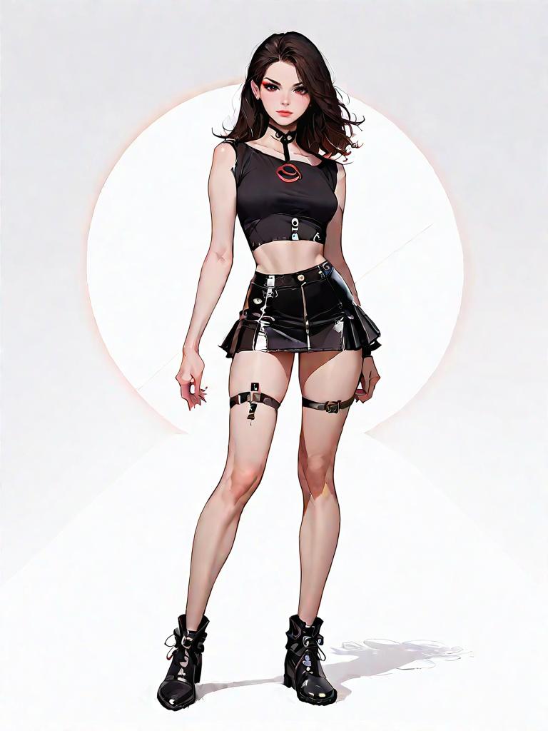1girl, source_comics, realistic face, full body shot, Woman, casual, navy and white horizontal striped short dress, neon yellow trim on neckline and sleeves, round neckline, short sleeves, fitted silhouette, above-the-knee length, black sunglasses.