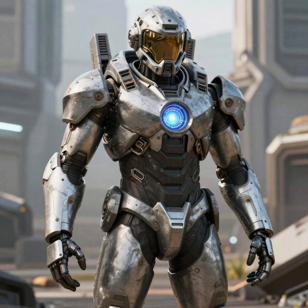 Futuristic Cyberpunk Warrior and Robot