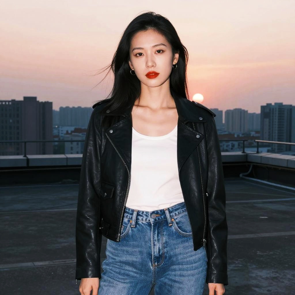 A Willowy woman in streetwear, wearing a cropped black and white striped tank top and burgundy faux leather pants, black aviator sunglasses, captured in the vibrant atmosphere of a street parade in Mexico City, styled with a kodacolor analog film aesthetic. Sexy. Pretty face and beаutiful eyes. Big breasts BREAK chinese, asian, traditional Chinese aesthetics, delicate brushwork, ink wash painting textures, vibrant red and gold accents, elegant Asian female, silk fabrics, ornate patterns, soft lighting, ethereal atmosphere