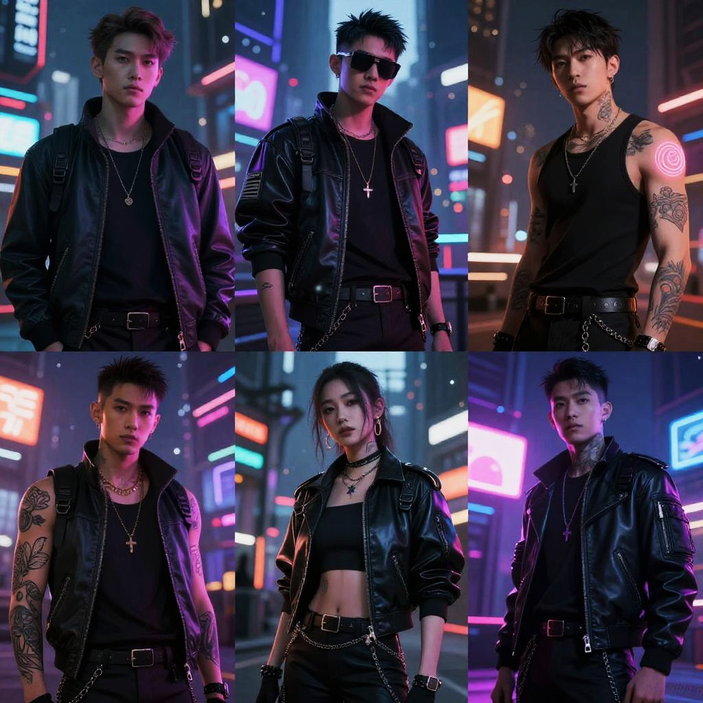 Stable diffusion nsfw examples depicting futuristic cyberpunk themes with neon lights, glowing tattoos, and edgy character designs in a dark urban setting, ultra-detailed digital illustration