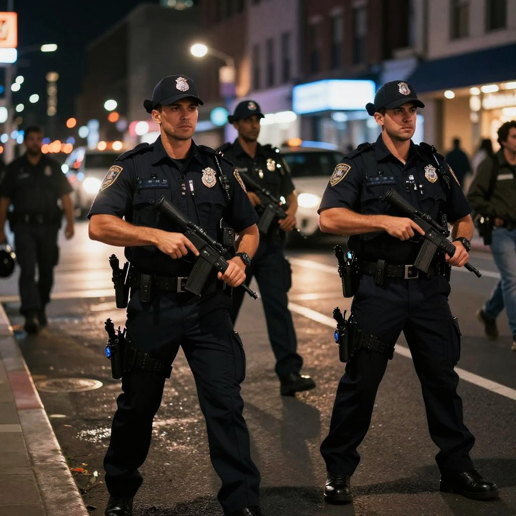 Handsome Cops Patrolling Neon City Night