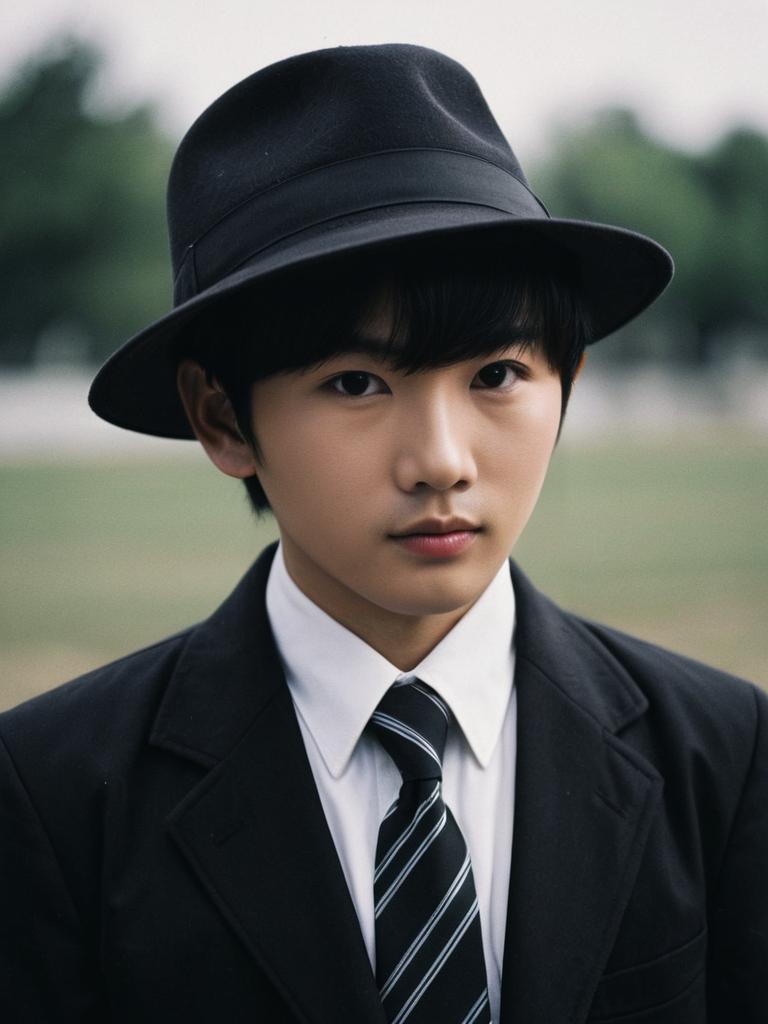 Candle costume, candle, 1boy, solo, male focus, black hair, looking at viewer, shirt, realistic, holding, blurry, long sleeves, white shirt, asian, blurry background, black eyes, indoors, standing, collared shirt, short hair, candlestand, cowboy shot
