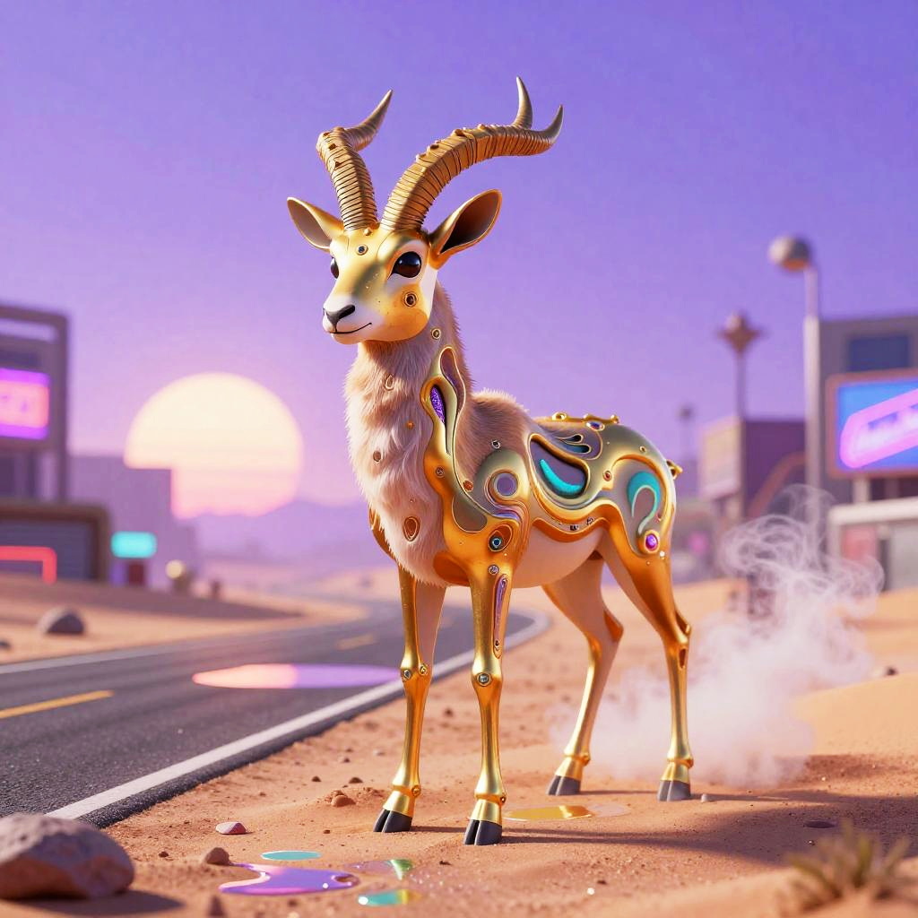 Surreal Copper Stag Amid Neon Gothic Skyline