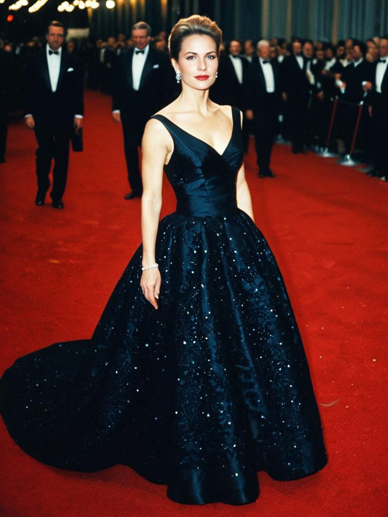Woman in Gala Outfit, photorealistic elegant red carpet portrait, cinematic realism