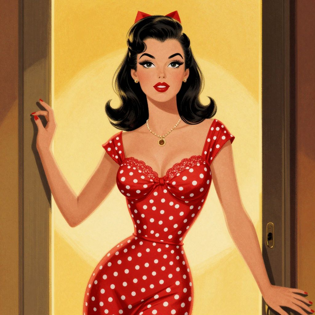 Vintage Pin-Up Woman in Red Polka-Dot Dress