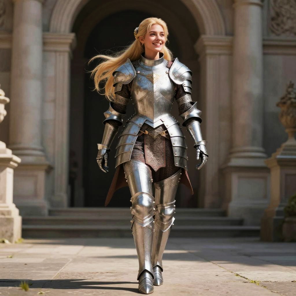 (full body), (1 witcher), blond short hair, flat chest, collarbones, armor, (white tights), (smile:0.6), (spread legs), sitting, dynamic angle, modelshoot style, (extremely detailed CG), photo of beautiful artwork, (Antonio Moro), (Jeremy Mann), High Detail, Sharp focus, dramatic, oil painting, (photorealistic), Intricate