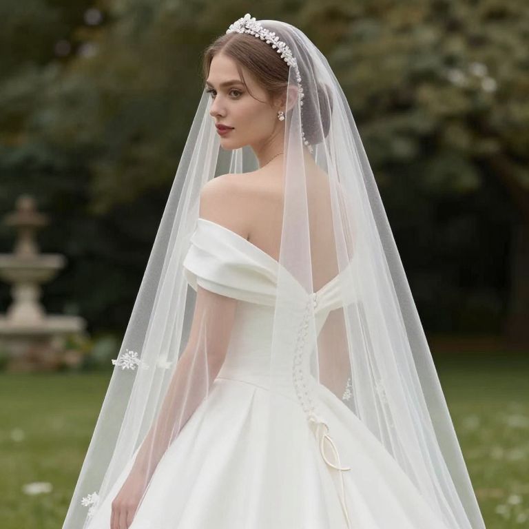 Wedding Dress Princess Alexandra Denmark, bride in a wedding dress with a veil and tiable
