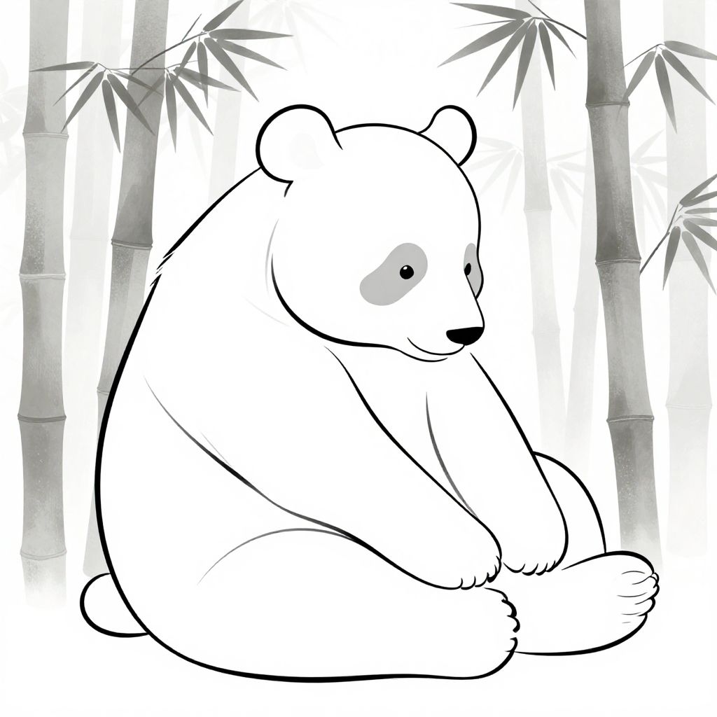 Simple black and white line drawing of a cute, chubby bear sitting and holding its paw, with a gentle smile.