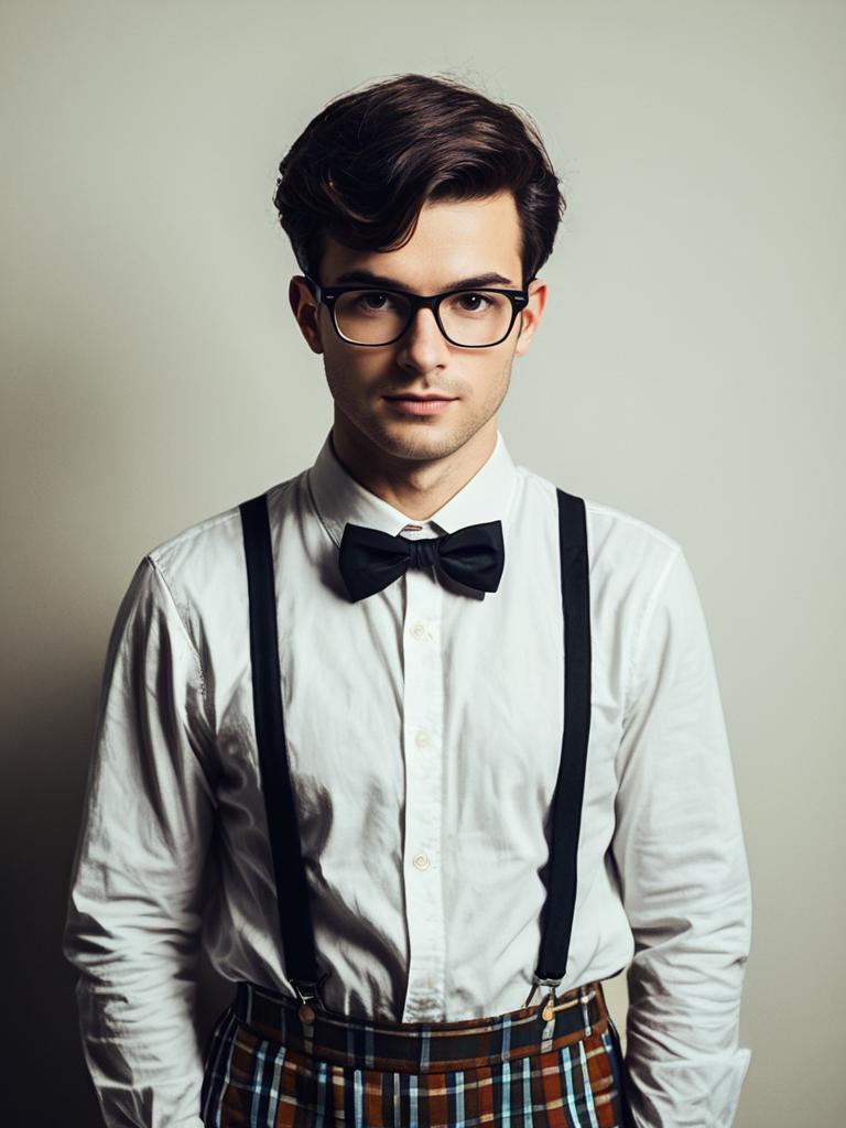 Man in Nerd Costume, close-up detailed goofy headshot --sref 1400
