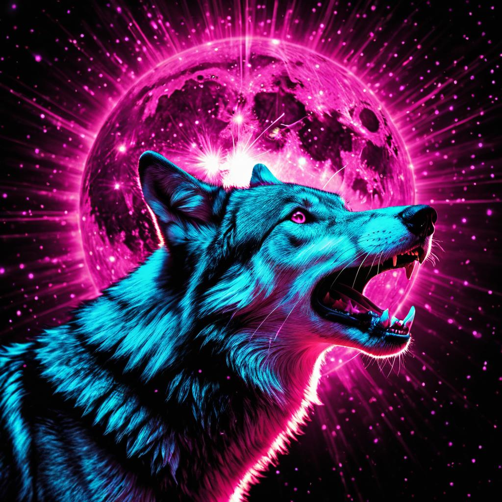 Glowing Wolf Howling at Radiant Magenta Moon