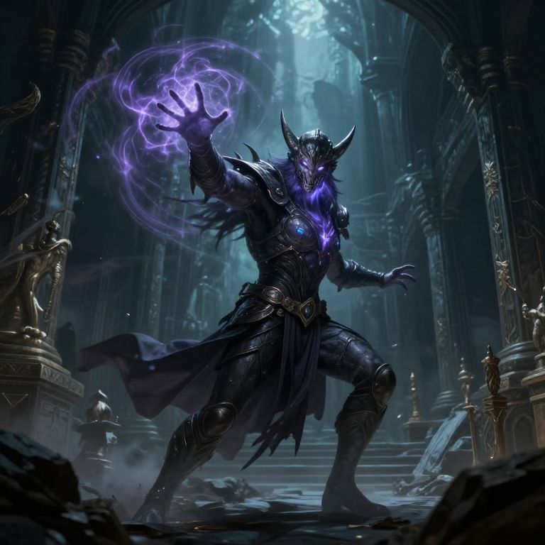 Epic scene of Gargamella casting a powerful spell in a mystical ancient ruin, swirling magical energy, dynamic composition, fantasy concept art with dark moody tones