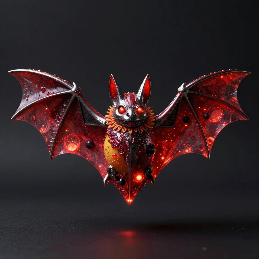 Bat made out of fruit - (masterpiece:1.1), (best quality:1.1), (intricate:1.1), (detailed:1.1), (ornate:1.1), (aesthetic:1.1), , (science fiction:1.1), (cyberpunk:1.0), (tragic:1.1), (red theme:1.0), (glowing:1.1), (metallic:1.0), bat made out of fruit, (covered in juice:1.1), neon, masterpiece, best quality, ultra high res, (photorealistic, realistic:1.2), deep shadow, raw photo, film grain, Fujifilm XT3, 8k uhd, dslr