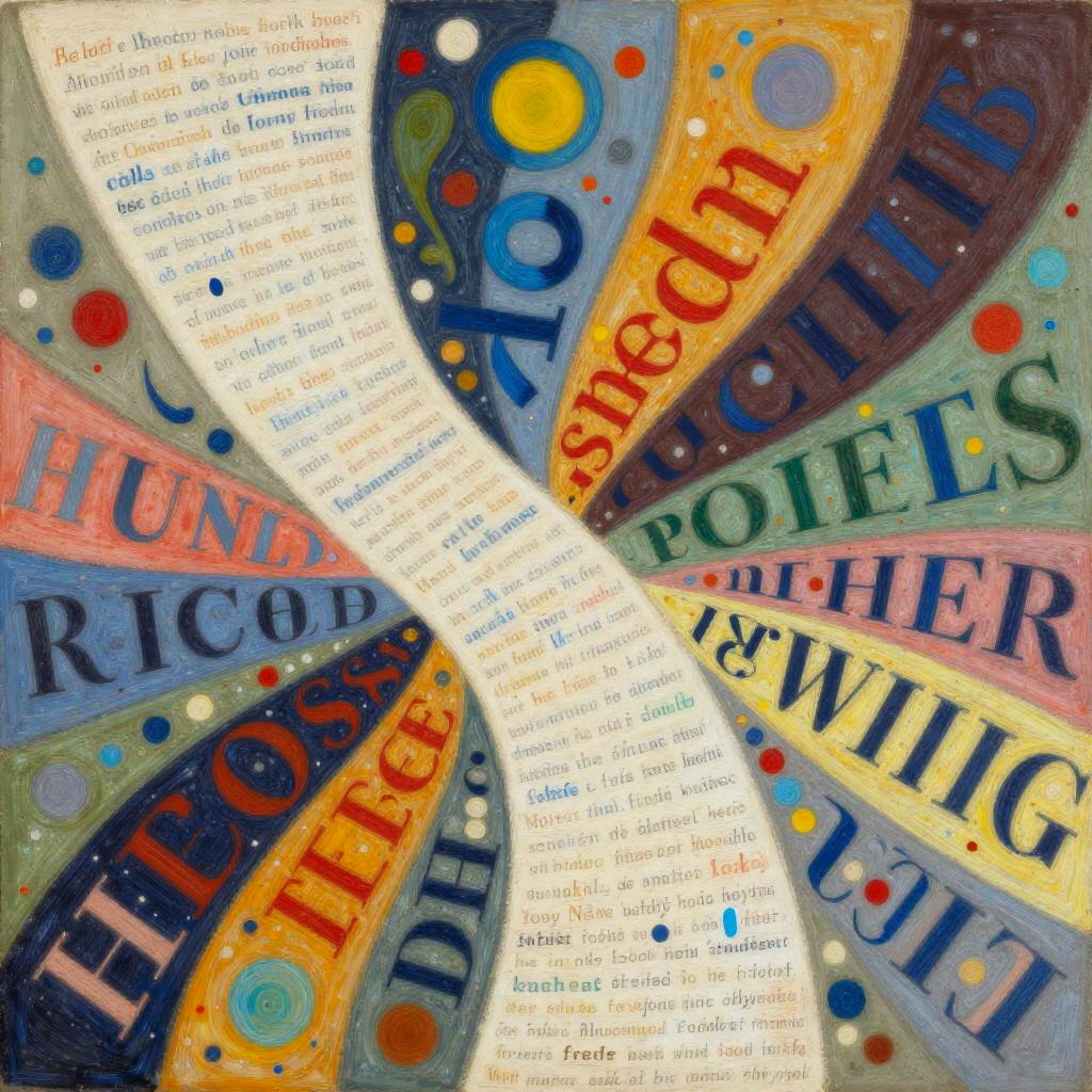 Words to AI art interpretation illustrating a digital symphony where written words flow across a canvas that vibrantly morphs into graphical elements and abstract shapes, emphasizing the creative journey from text input to AI-generated artistic expression, richly textured and colorful.