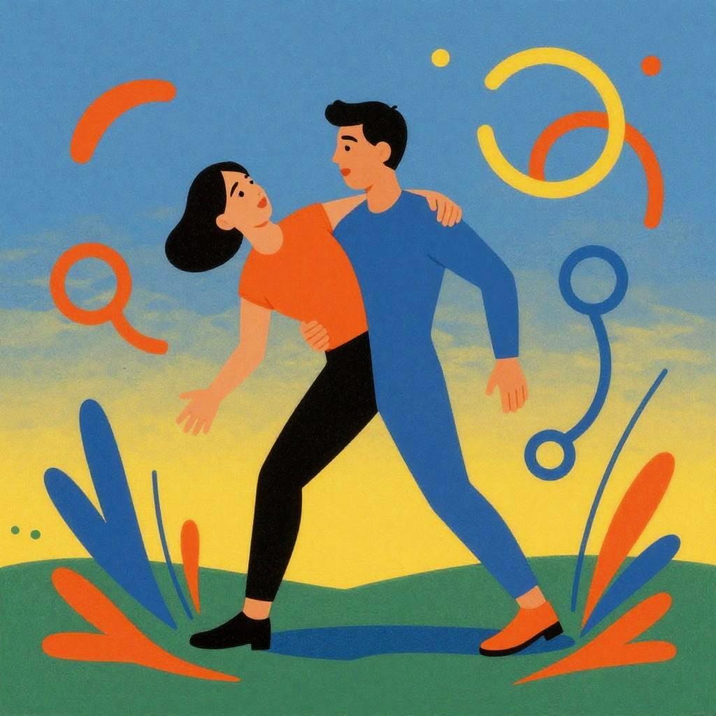 Spanking experience captured in an abstract surreal style, bold exaggerated colors, dynamic flowing lines and shapes symbolizing emotion and movement, dreamlike environment