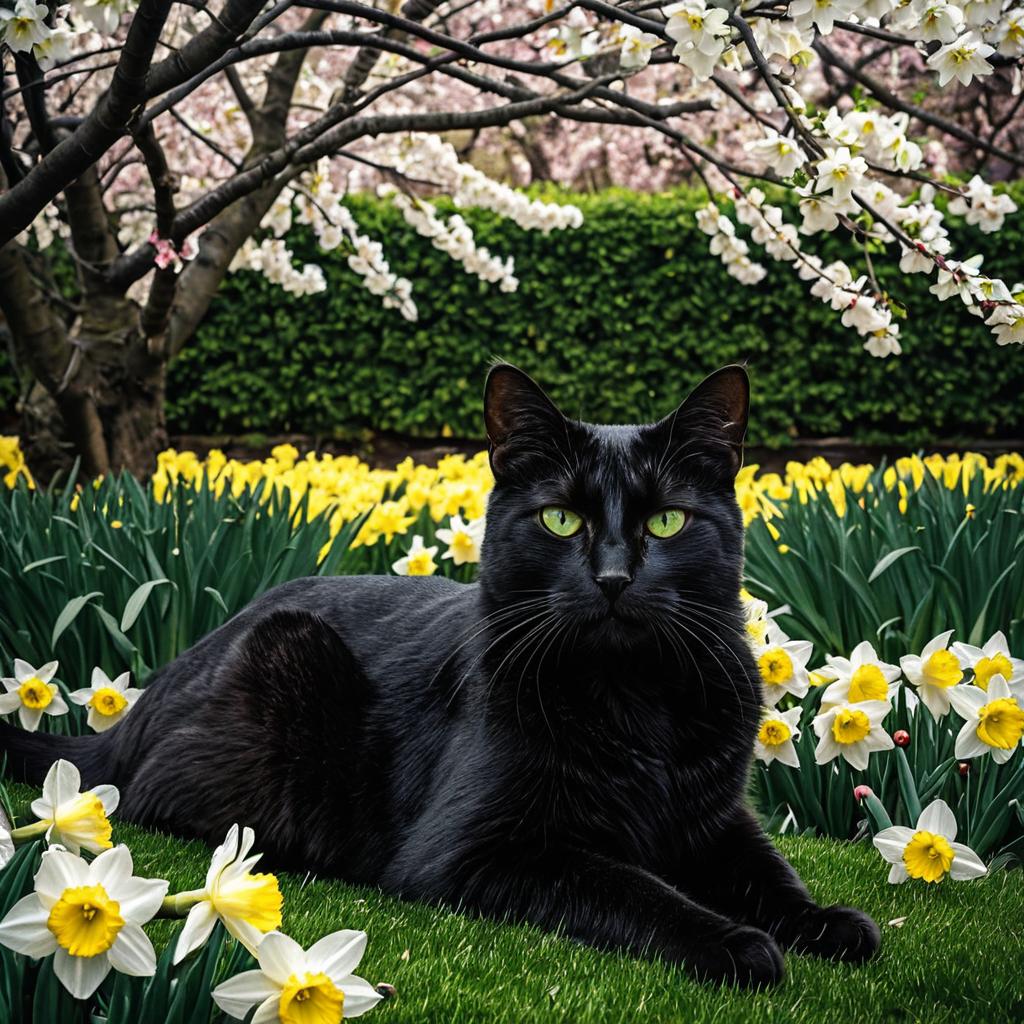 Full-length portrait of a sleek black panther with amber eyes, resting in a bed of magnolia and ferns. Style inspired by Vermeer with soft uplighting, detailed 3D render, lush foliage background, conveying wisdom and kindness, ultra-realistic.