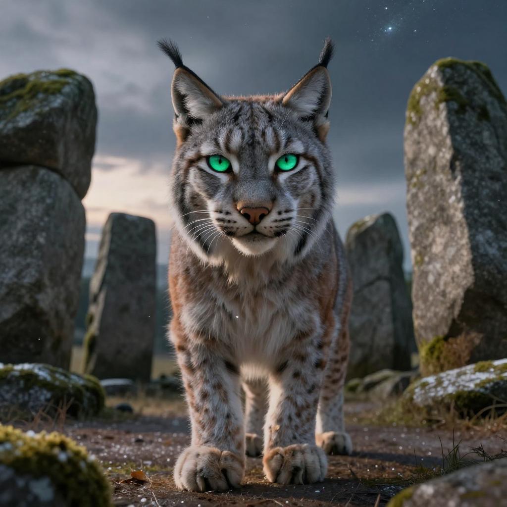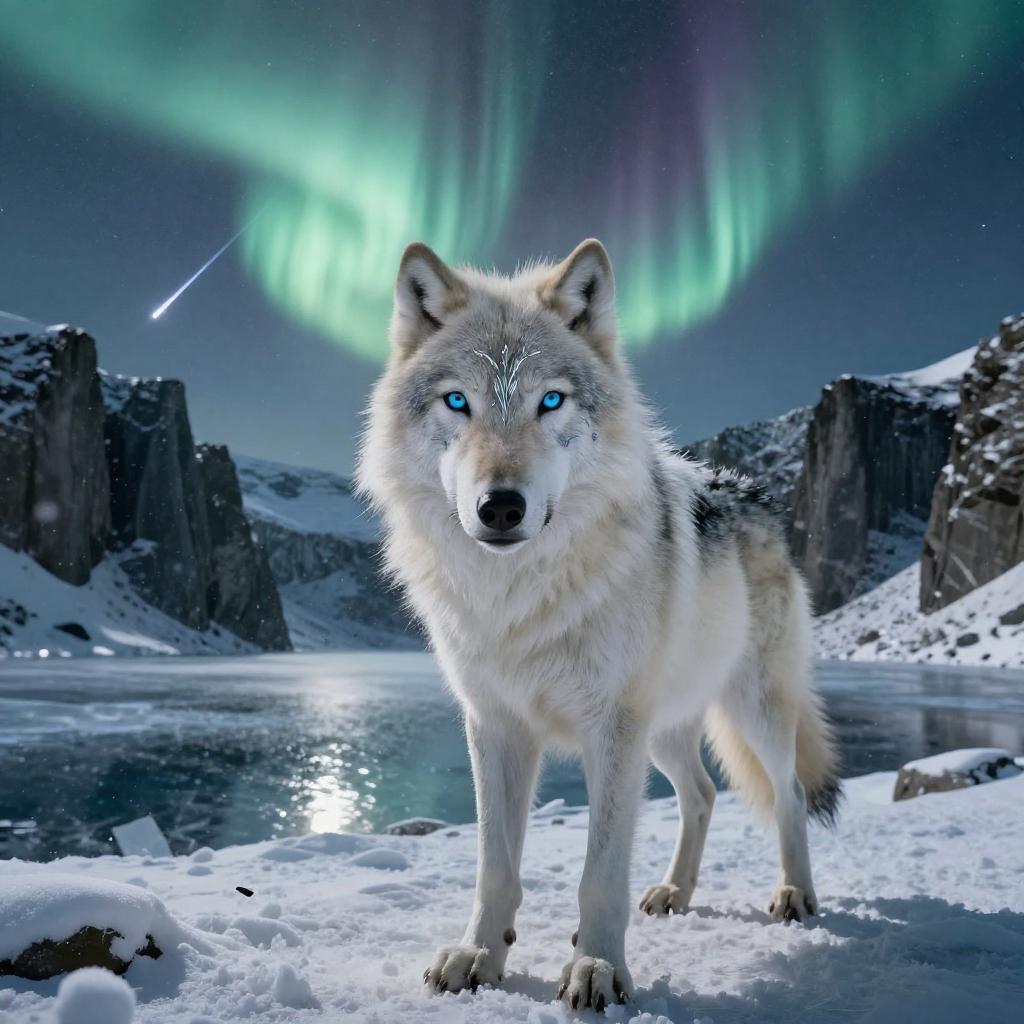 Portrait, low-angle, looking at viewer, detailed fluffy fur, dynamic composition, cinematic depth of field; elegant white tiger with striking blue eyes and black stripes framed at snowy Himalayan mountain peak under swirling storm clouds; moody color grading, rim light, half-body shadow, ambient light on the body, particle snow, stars and nebula, reflective highlights; masterpiece, ultra realistic, photorealistic, studio HDR, path tracing, 65mm film emulation, 12k, volumetric snow, specular caustics, subtle film grain, soft cinematic bloom, intricate textures, physically based shading, subtle bloom, coherent anatomy