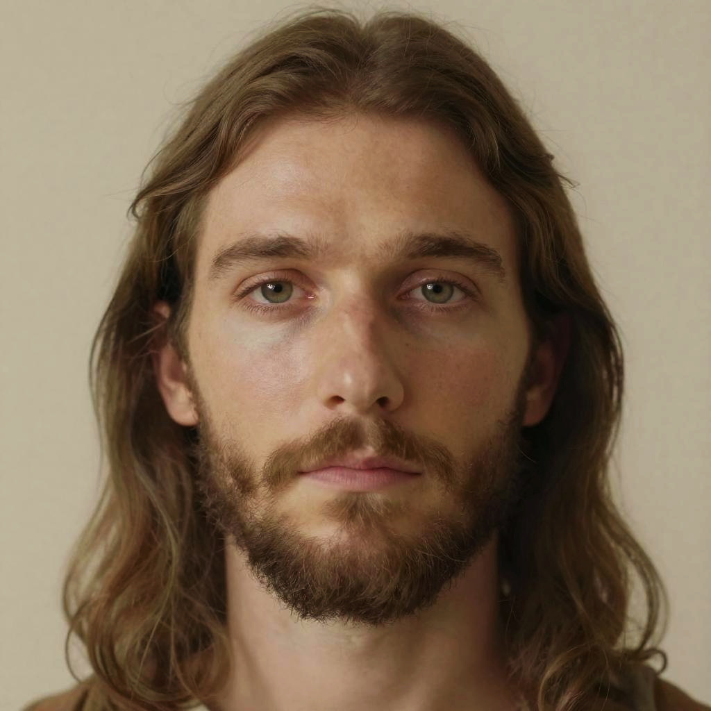 Jesus realistic portrait, detailed facial features, warm natural lighting, soft skin texture, gentle expression, photorealistic style, subtle background, 4K resolution