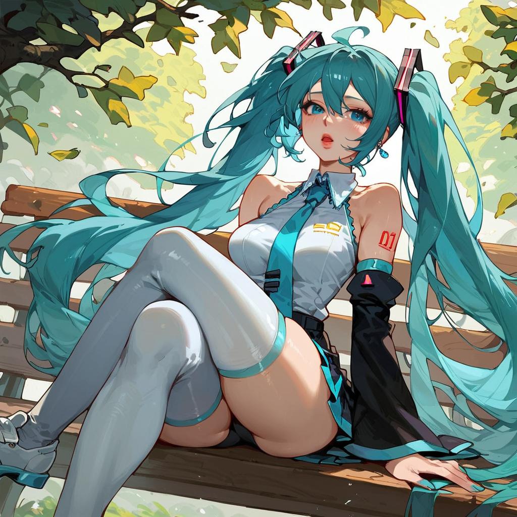 Hatsune Miku Sitting by the Water at Night