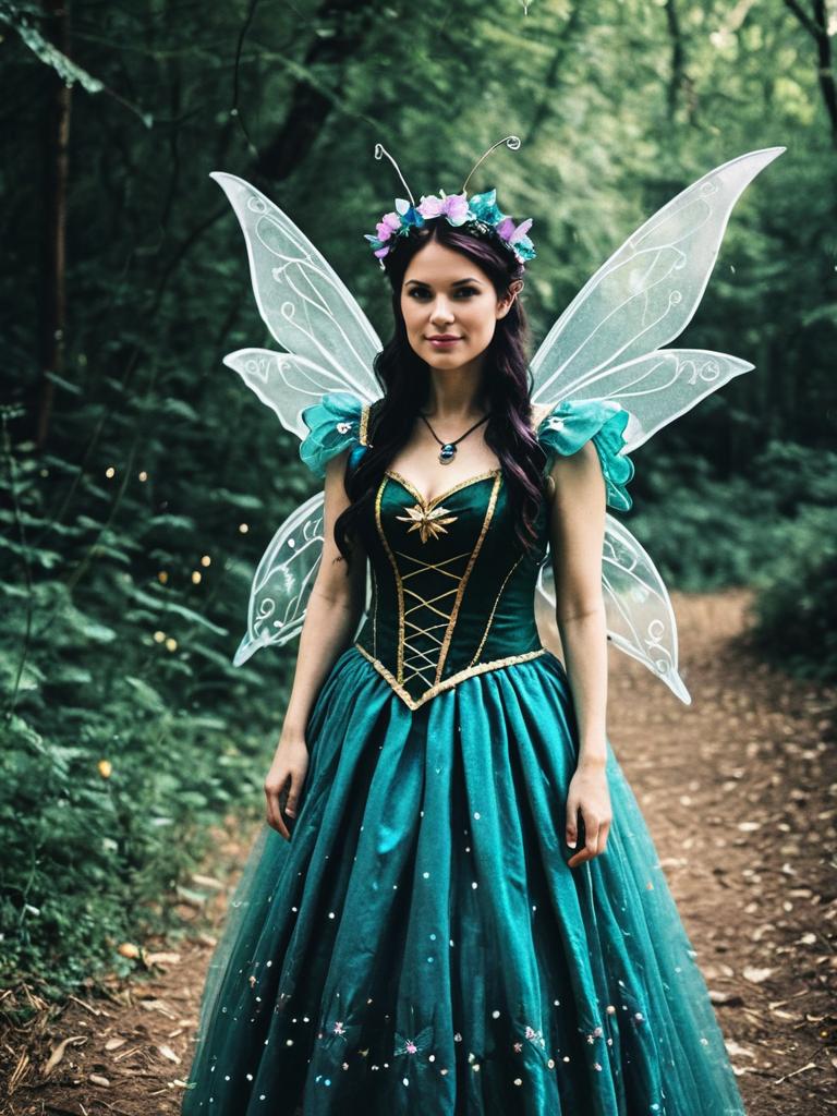 Woman in Enchanted Fairy Costume, cosplay festival photo, photorealistic realism