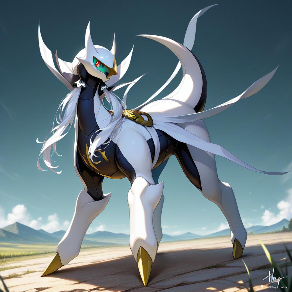 Arceus, pokemon, no humans, red eyes, pokemon (creature), green sclera, by artist hong (white spider), illustrious