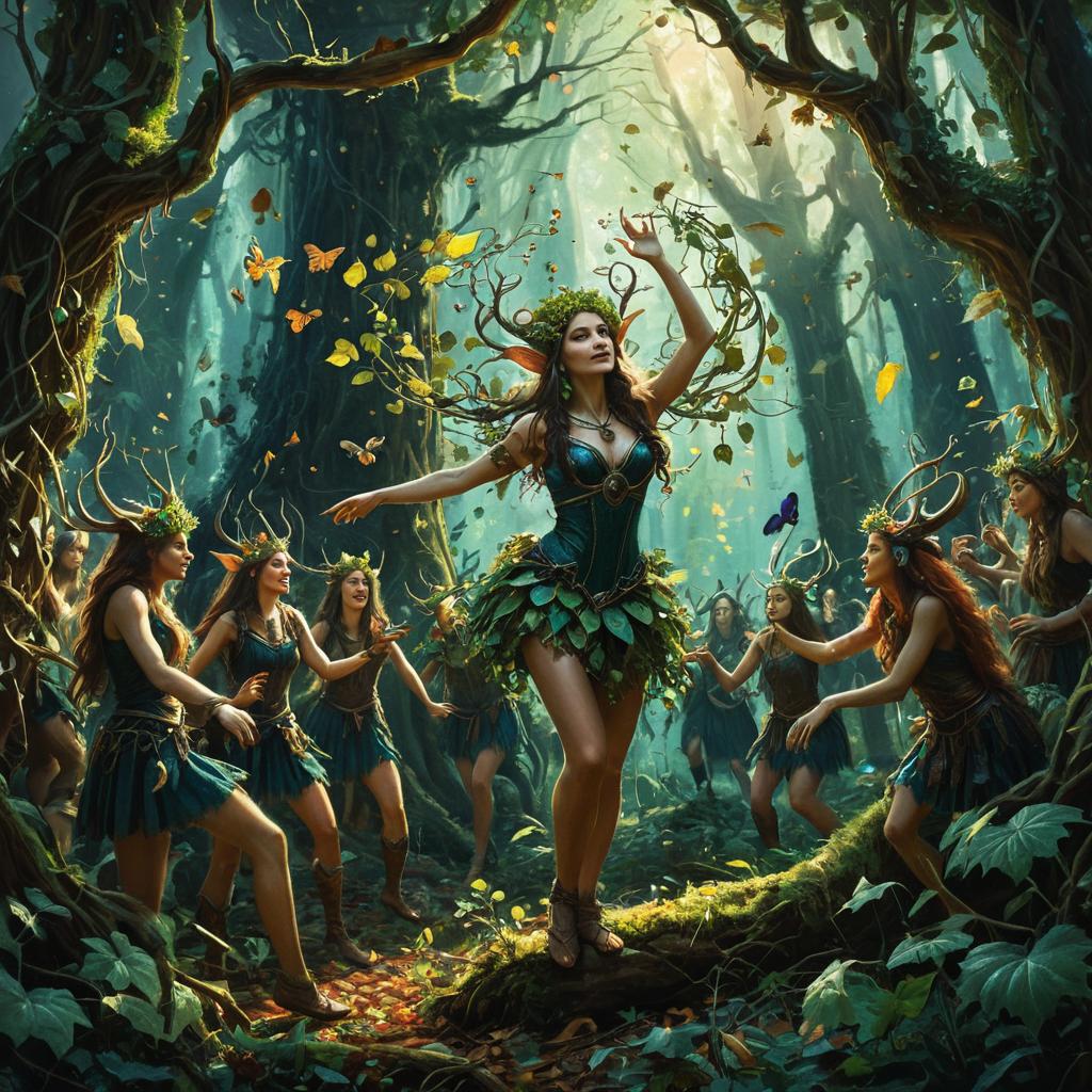 Enchanted Dryad Dancing in a Forest