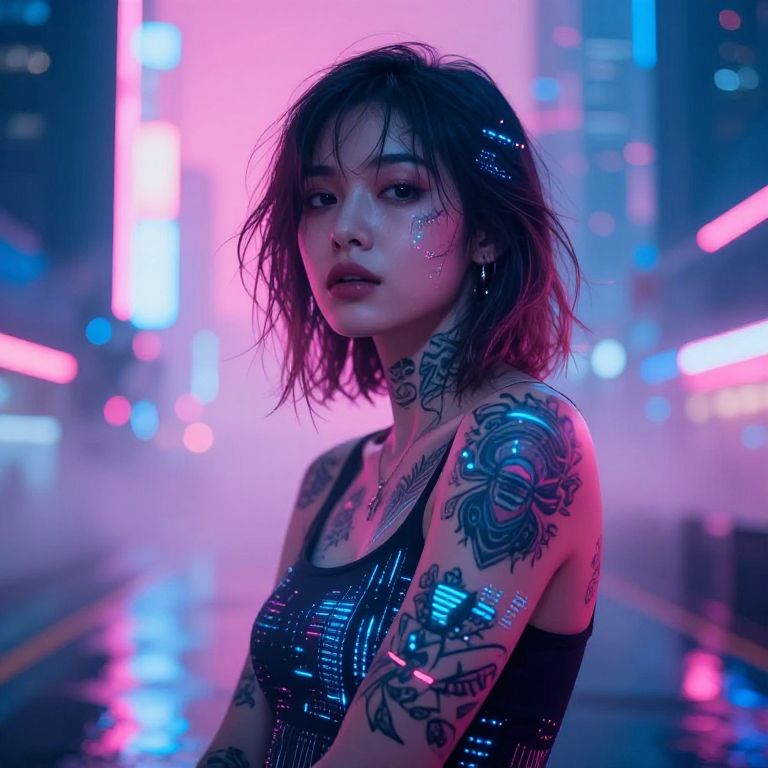 Cyberpunk Portrait with Glowing Tattoos