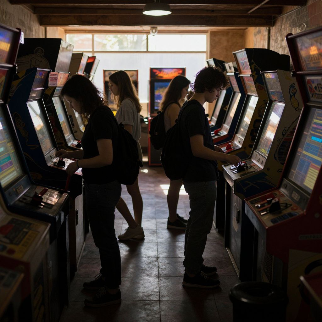 Retro Arcade Family Holiday Scene