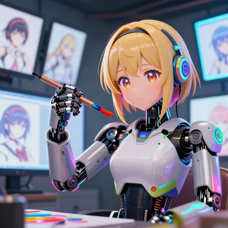 Anime Robot Creating Expressive Girl