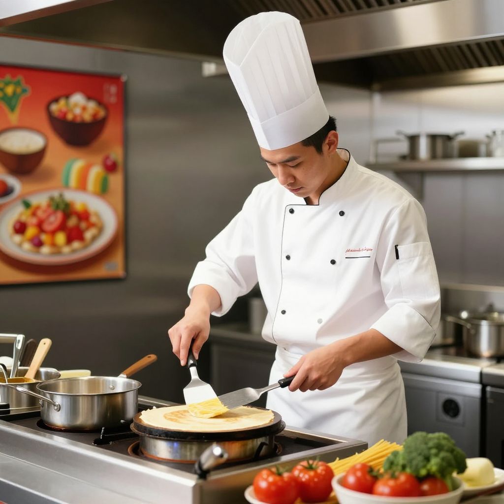 Chef Sautéing Vegetables in Kitchen