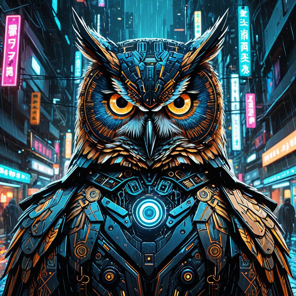 Cyberpunk Owl Android in Neon City