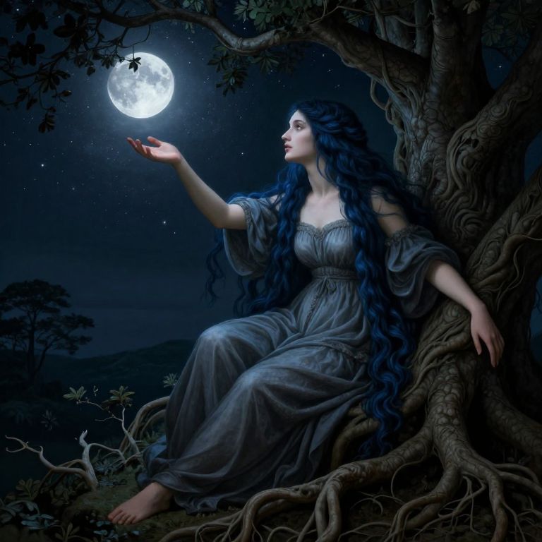 Envision an expansive portrait in the enchanting style of pre-Raphaelite art, portraying an ethereal nymph with cascading golden locks draped over her shoulders, tenderly caressing a radiant orb as she gazes into its shimmering surface from a unique 'bird's-eye view' angle. Set against a rich, verdant forest backdrop with vivid autumn hues, this evocative scene transitions from enchantment to introspection, capturing a sense of mystique and otherworldly beauty. This captivating image seamlessly blends the refined aesthetics of Victorian-era painting with elements of fantasy and wonder, creating a timeless and mesmerizing atmosphere that transports viewers into a realm of magic and allure.