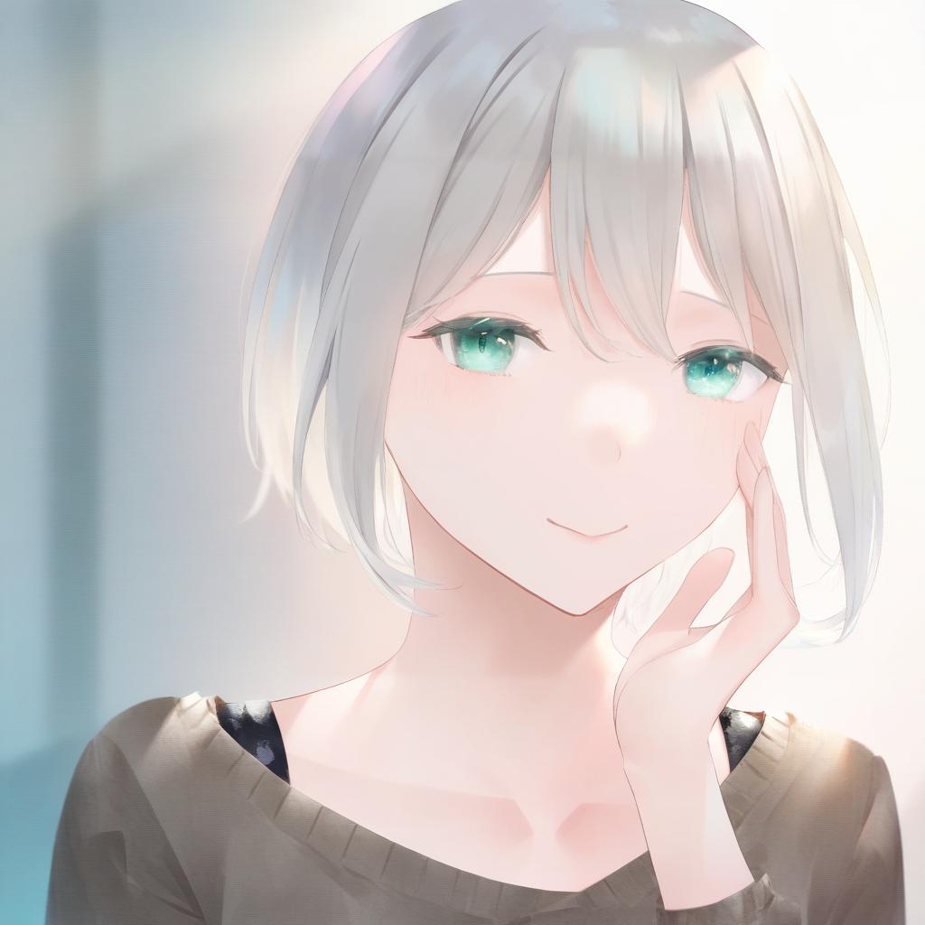 Antarcticite, houseki no kuni, 1other, blue eyes, grey eyes, colored eyelashes, short hair, white hair, crystal hair, gem uniform (houseki no kuni), gem uniform (houseki no kuni), black gloves, necktie, by artist xe (execut3r), leet