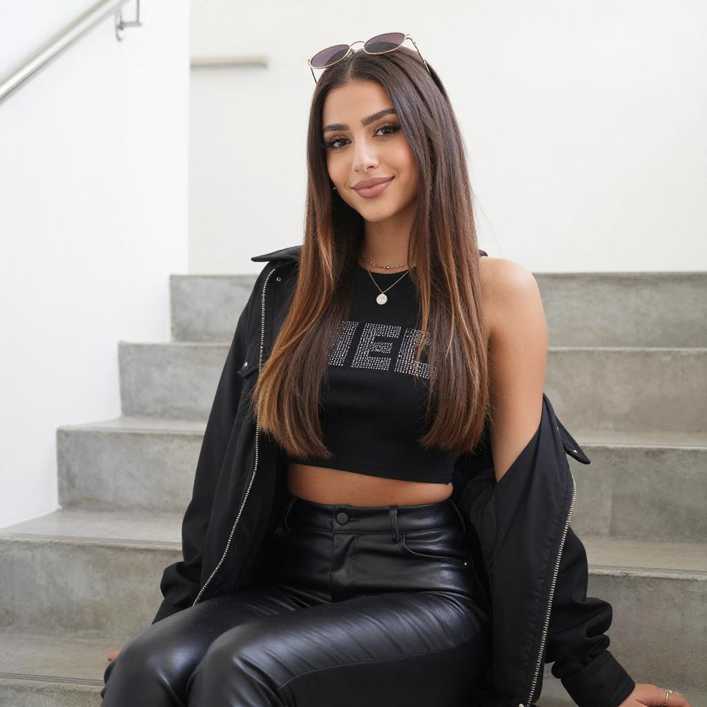 Young Woman in Pink Snakeskin Blouse