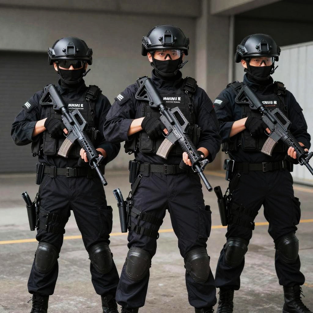 Portrait photography of Mobile Strike Special Force guy, (((1 boy, 2 boys, 3 boys))), The Mobile Strike Team is a formidable sight to behold. Clad in advanced tactical gear, each member is a skilled and disciplined operator. Their uniforms are a blend of sleek, dark materials designed for optimal mobility and protection. Helmets with integrated communication systems sit atop their heads, and their faces are obscured by visors that reflect the determined glint in their eyes.Armed with an array of cutting-edge weaponry, the team members move with precision and purpose. Assault rifles equipped with various attachments hang at the ready, while holstered sidearms provide a secondary option for close encounters. Ammo pouches and utility belts adorn their bodies, showcasing a careful balance between firepower and functionality., picture of a vivid, (masterpiece:1.2), (extremely detailed), (8k:1.1), (perfect lighting, best quality, highres, original), (realistic photography:1.4), high detailed skin, shaded face, soft lighting, (small face), RAW, ultra highres, pores visible