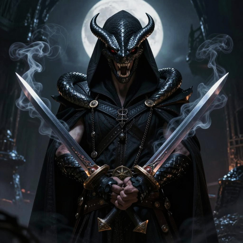 Cybernetic feline assassin portrait with neon whisker implants, holding a pair of plasma claws. Set against a dark alley neon-lit skyline, this highly detailed fantasy piece draws influence from Masamune Shirow, H.R. Giger.