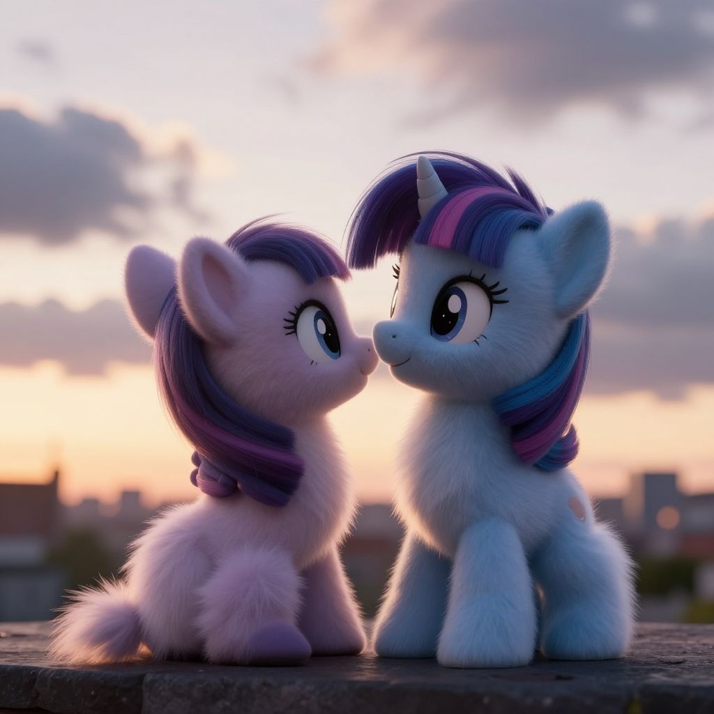 Score_9, score_8_up, score_7_up, score_6_up, score_5_up, score_4_up, duo, (( Zipp Storm and Pipp Petals sitting, enjoiyng)), ((cute, little, detailed fuzzy pony, fur)), (high quality, detailed, beautiful), full body, cloudy sky, rear view, townscape, neodark, shiny, adorable face, sunset on city, outside, detailed beautiful eyes, diadema, cinema, realistic, outstanding, countershading, detailed soft lighting, ear fluff, (fluffy:0.7), chest (fluff:0.8), ear (fluff:0.9), cheek (fluff:0.7)