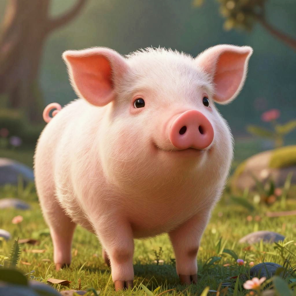 Little Girl Feeding Pig in Field