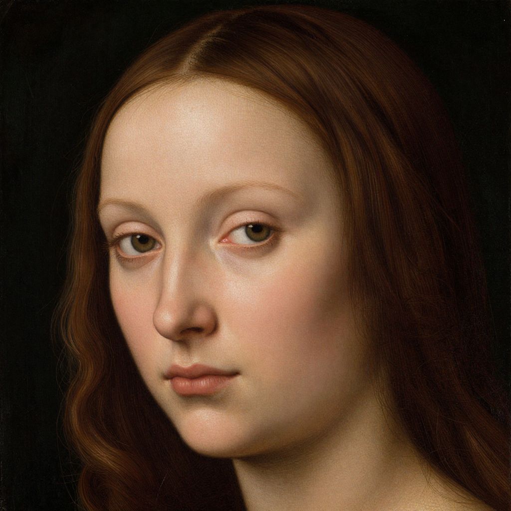 A close up of a painting of a woman's head, an ultrafine detailed painting by pietro perugino, deviantart, pre - raphaelitism, da vinci, pre - raphaelite, detailed painting