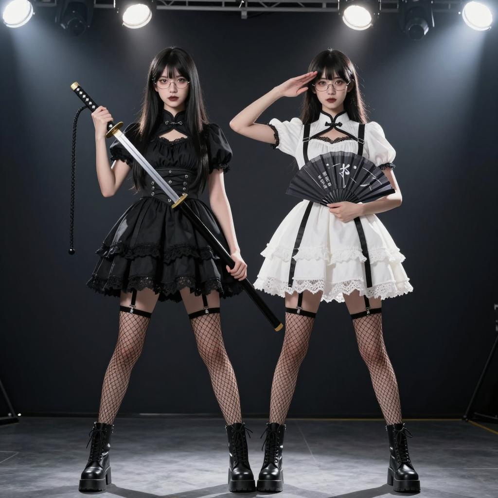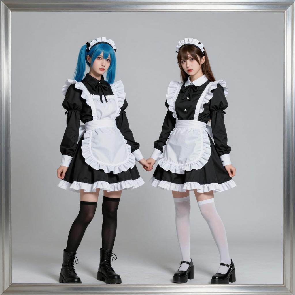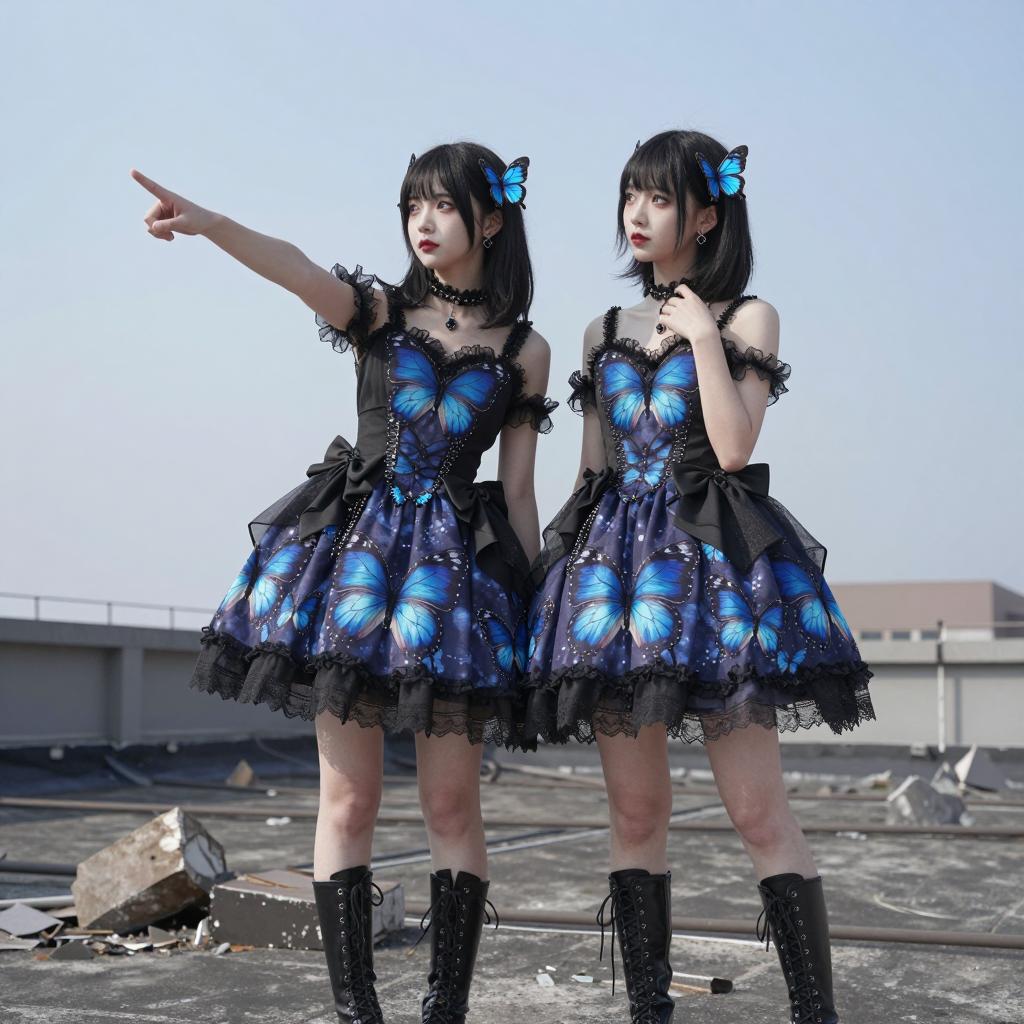 Four Women in Denim Cosplay with Colored Wigs