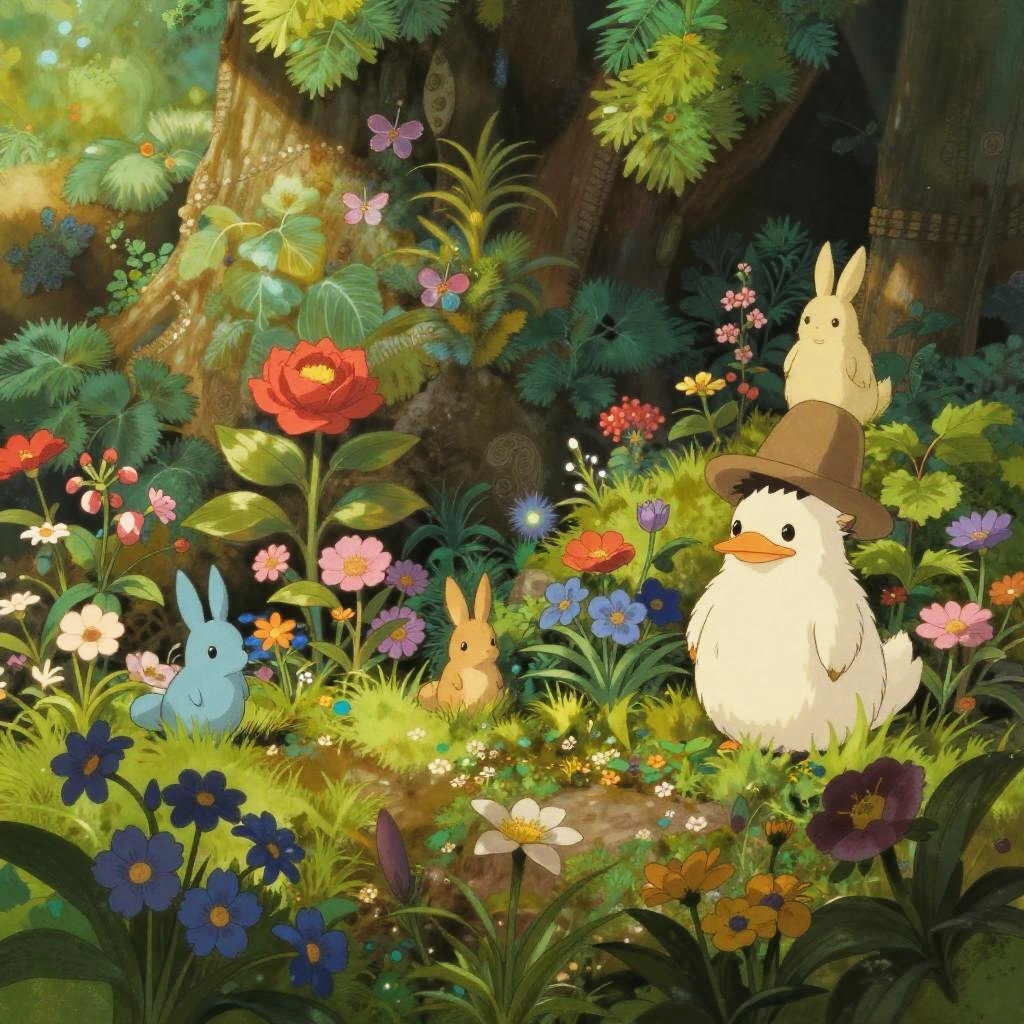 Ghibli-Style Enchanted Forest Scene