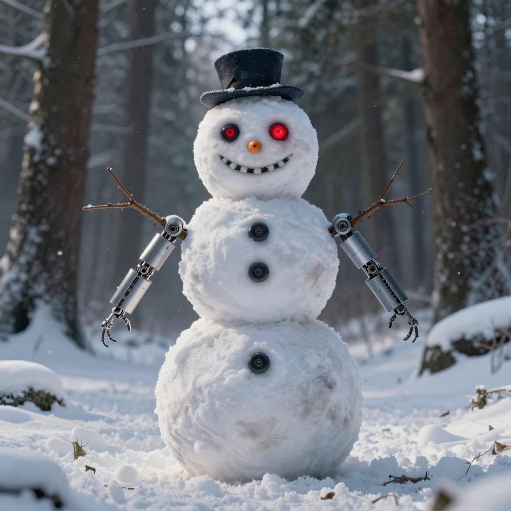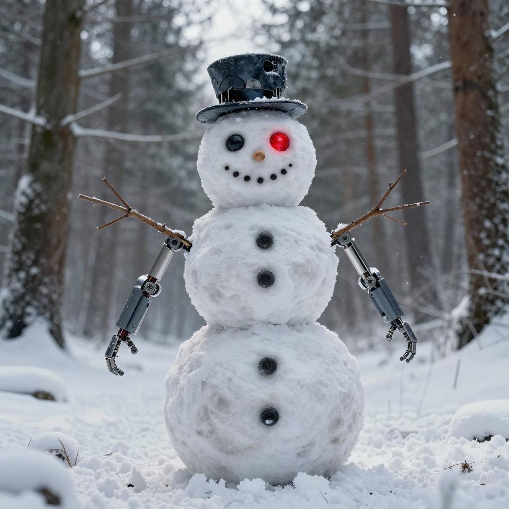 Cyborg Snowman in a Snowy Forest