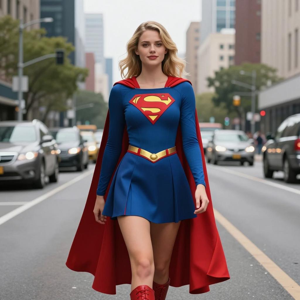 Photorealistic Supergirl in Metropolis